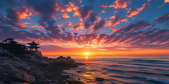 北京 04:30; 起牀(chuang),看日(ri)出、趕海潮(chao)、拾海貝;(客人(ren)自願)