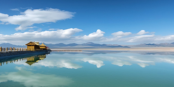 掠過(guo)祁連山(shān)的(de)雪(xuě),昆崙(lun)山(shān)的(de)雲,緩緩駛入一(yi)片夢境。人(ren)在(zai)湖(hú)邊走(zou),宛在(zai)畫中(zhong)遊,雲卷雲舒,水天相交…