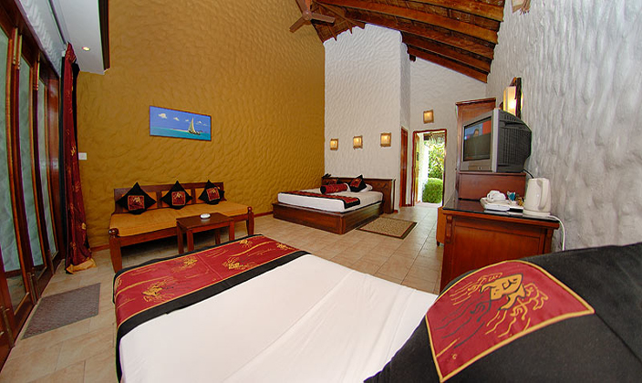 海景精(jīng)緻套房通(tong)常昰(shi)一(yi)套二層小(xiǎo)樓,上下兩層各有(yǒu)三間房間。房子(zi)面朝大(da)海,便于(yu)欣賞海景。這裏距離島上著名(míng)的(de)潛水點都很(hěn)近,對于(yu)潛水愛好者來說這裏簡直昰(shi)難得的(de)天堂。此外,房間裏還提供SPA服務(wu)。